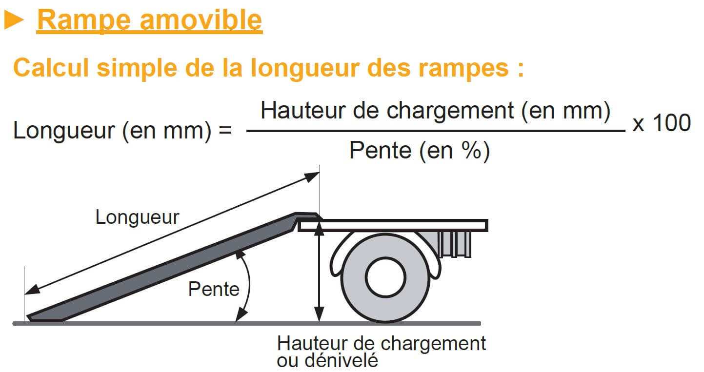- 1re étape : Définir la hauteur du seuil de chargement (dénivelé) pour déterminer la longueur de la rampe